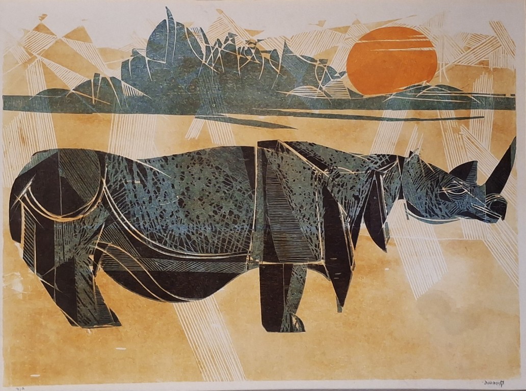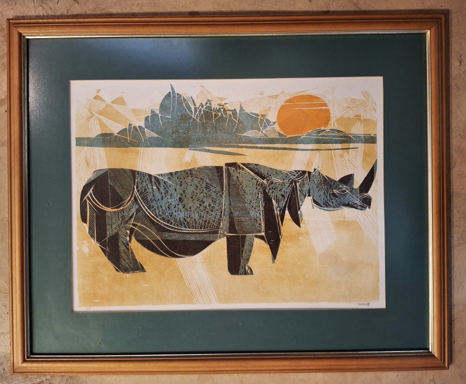 Rhinoceros, Lithograph in colours, signed in pencil and numbered 9 / A (46 x 62.5cm)