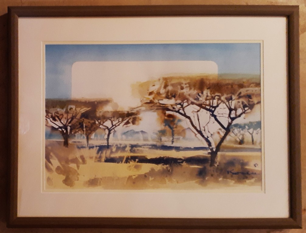 Umbrella Thorns in a Landscape, Watercolour, signed and dated ’87 (44 x 64cm)